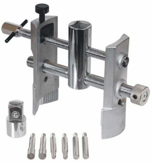 Ключ предназначен для откручивания гаек ступиц колес с шестигранным и восьмигранным профилем с размером от 49 до 143 мм Укомплектован тремя парами вставок для различных типов фигурных гаек ступиц Имеет переходную головку с внутреннего квадрата на 1/2 на наружный квадрат 3/4 для привода ключа воротками Стяжные винту с трапециевидной резьбой, изготовленой методом накатки, и системой фиксации Рабочие лапки изготовлены методом горячей штамповки (ковки на молотах) Ключ защищен от коррозии хромовым покрытием с эффектом матовой поверхности