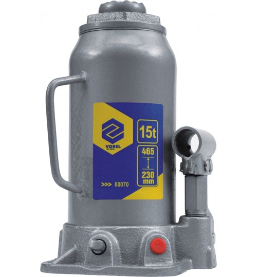 Домкрат гидравлический бутылочный 465мм. 15т. с клапаном VOREL (80070)