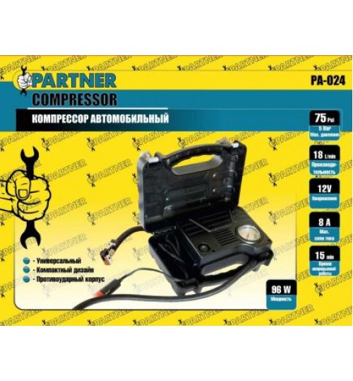 Компрессор автомобильный (18л/мин, 8А) 12V PARTNER (PA-024)