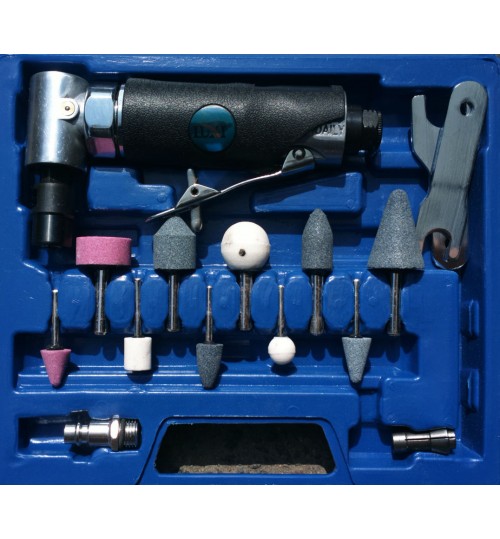Пневмобормашинка угловая 90° 6мм в кейсе с насад. (20,000 об/мин, L155мм, 16пр.) LUXI (LX-019)