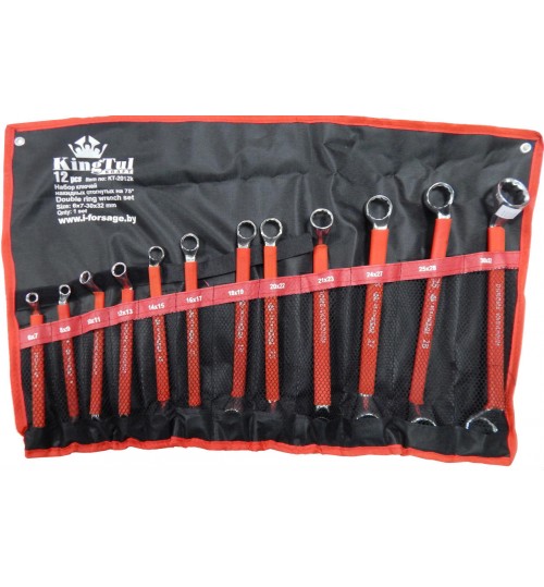 Набор ключей накидных, отогнутых на 75град., в прорезиненной оплетке 12пр. (6-32мм) KINGTUL (KT-2012K)