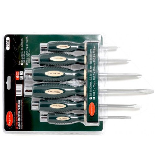 В наборе 6 отвертки с прорезиненными, маслобензостойкими рукоятками