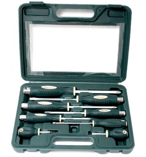 комплект состоит из 8отверток с прорезиненными, маслобензостойкими рукоятками