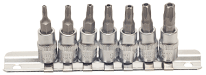 Набор торцевых головок со вставками Тогх® пять лучей Торцевые головки изготовлены из хром-ванадиевой инструментальной стали методом холодной штамповки. Материал вставок - инструментальная сталь S2. Рабочий профиль вст...