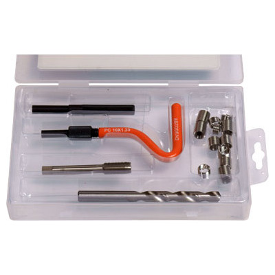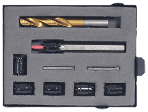 Набор предназначен для восстановления внутренней резьбы. Восстановление осуществляется путём вкручиванич пружинной резьбовой вставки. В наборе сверло, метчик, поводок для установки резьбовых вставок, выколотка...
