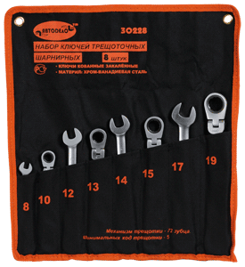Набор ключей рожково-накидных с трещоткой шарнирных 8-19мм. (8пр.) АВТОДЕЛО (30028)