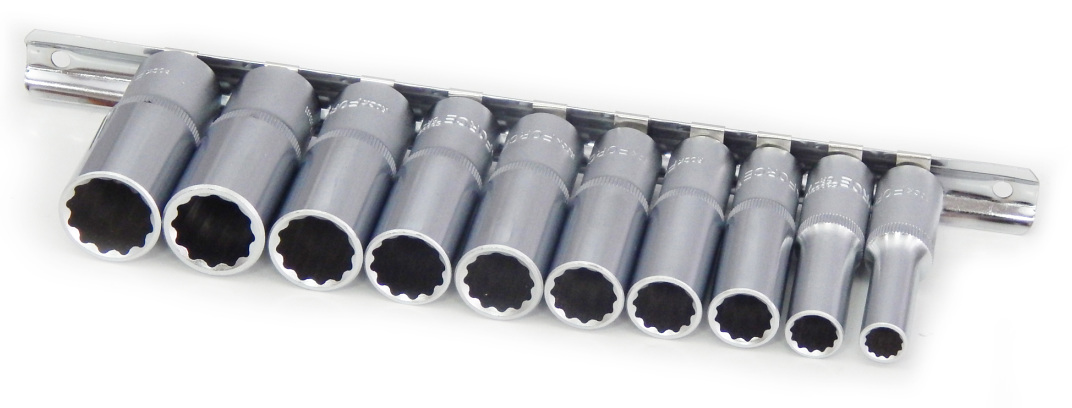 Набор головок глубоких, 12-гр., 10пр., 3/8" (8, 10, 12 -19мм) на планке ROCK FORCE (3102-9)