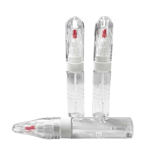 - Маркер состоит: бутылка, игла, прозрачный наконечник, крышка с кисточкой, шарик из нержавеющей стали Ø 0,4 мм
