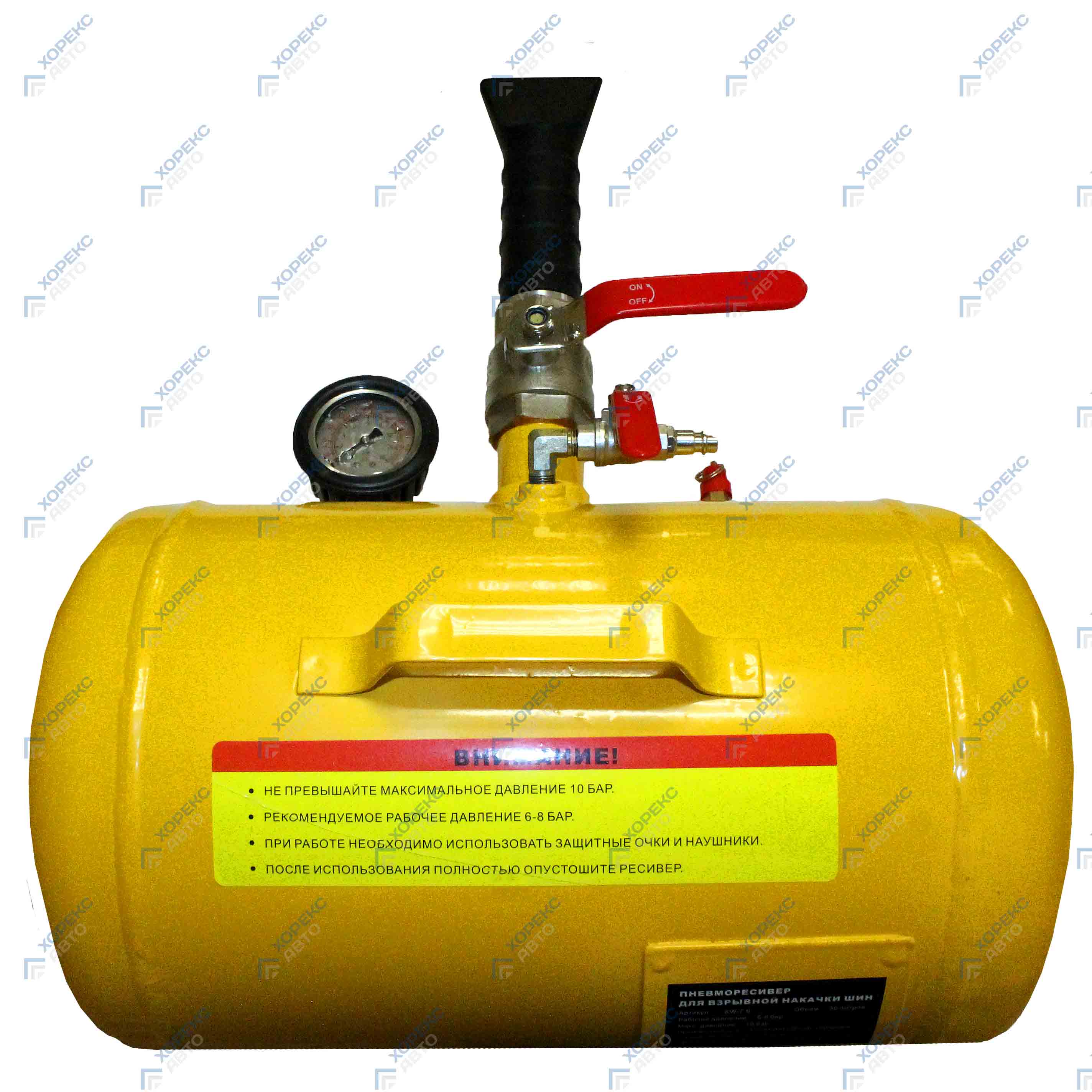 Бустер для подкачки шин 35л, модель XW-10, арт. № HZ 08.602W Конструктивные особенности: Глицеринозаполненый манометр для контроля давления Ручка для удобства Предохранительный клапан, ограничивающий да...
