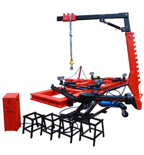 Силовое устройство является самым мощным и удобным инструментом среди одноклассников. Специально разработанная система шарниров наделяет этот агрегат свойствами движения руки человека и позволяет мастеру выбирать направление тяги с особой точностью. Одновременно с этим, данное устройство очень компактно и остается самым надежным в эксплуатации и простым в обращении оборудованием. Для удобства в передвижении по цеху и к месту работ, оно оснащено усиленными поворотными колесами. Фиксация к стапелю осуществляется одним клином в любой точке рамы. Прочная конструкция с помощью специальной оснастки позволяет использовать устройство для создания тяги вверх/вниз и толкающего усилия. Силовые устройства данного типа за годы эксплуатации достойно зарекомендовали себя в работе. Данная модель изготовлена в духе лучших образцов европейских производителей и дополнена разработками с учетом опыта и пожеланий мастеров кузовного дела.